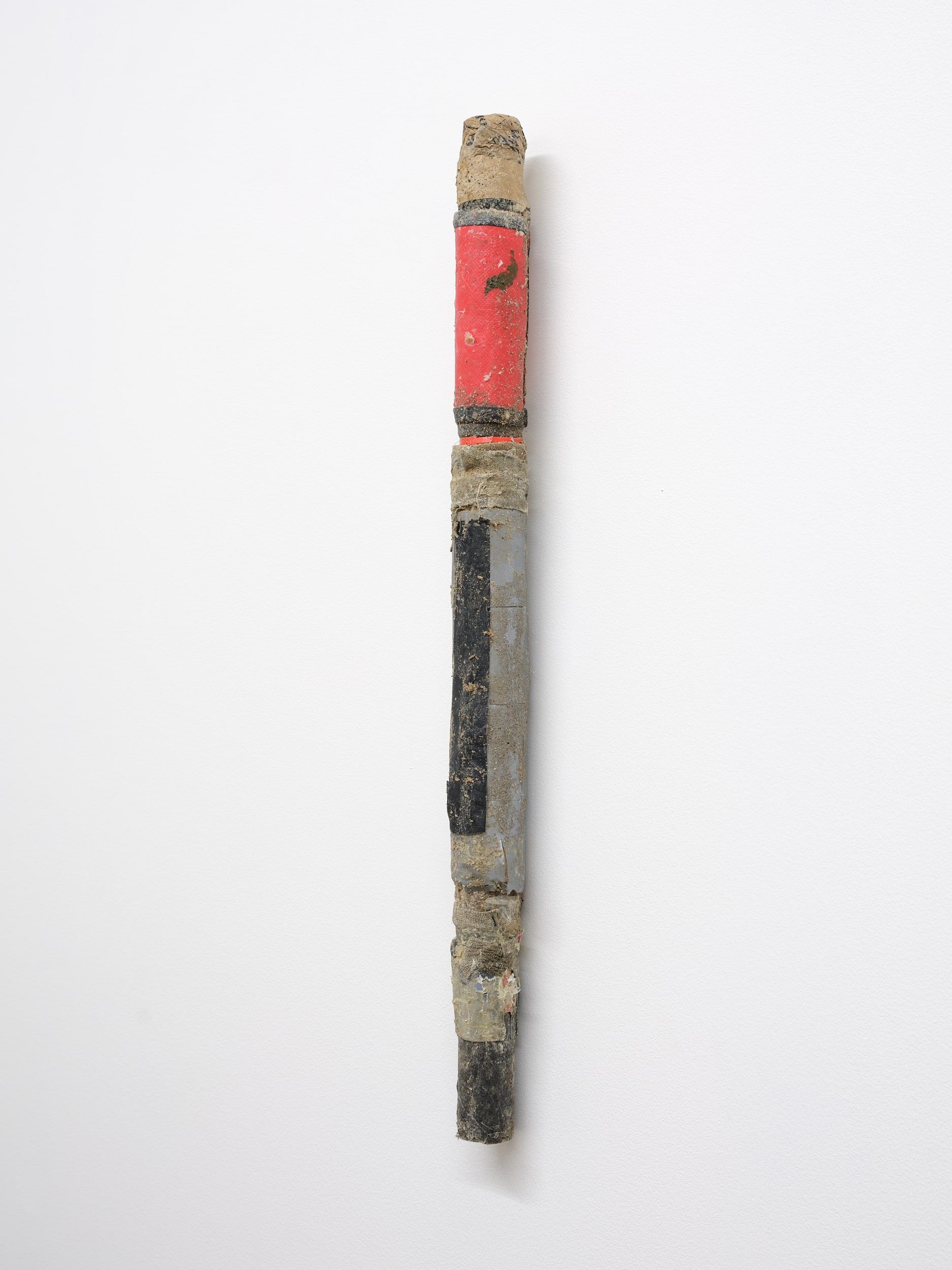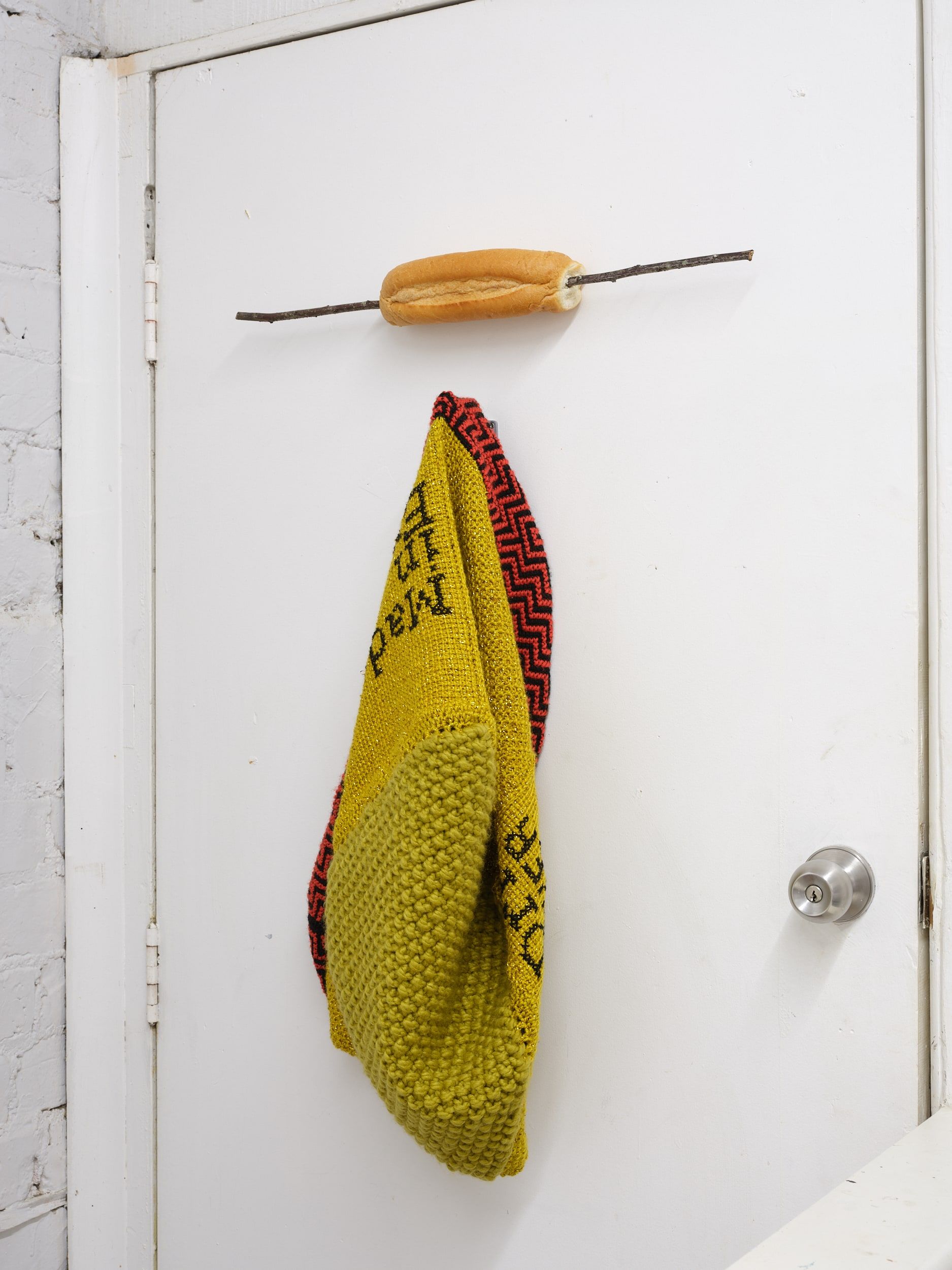 St. John crumb, dust, tape, assorted packaging, Hermès silk, glue, wooden dowel