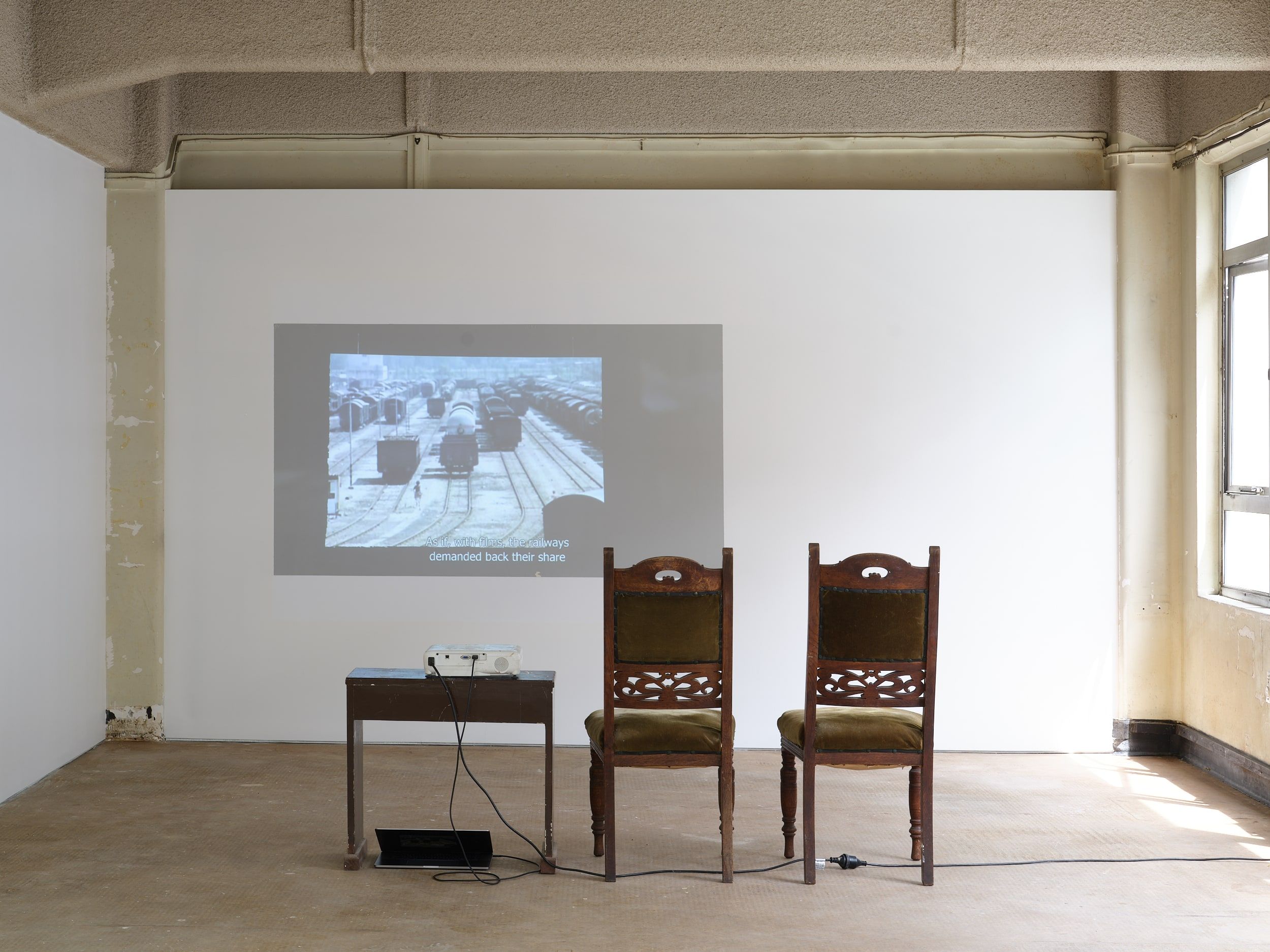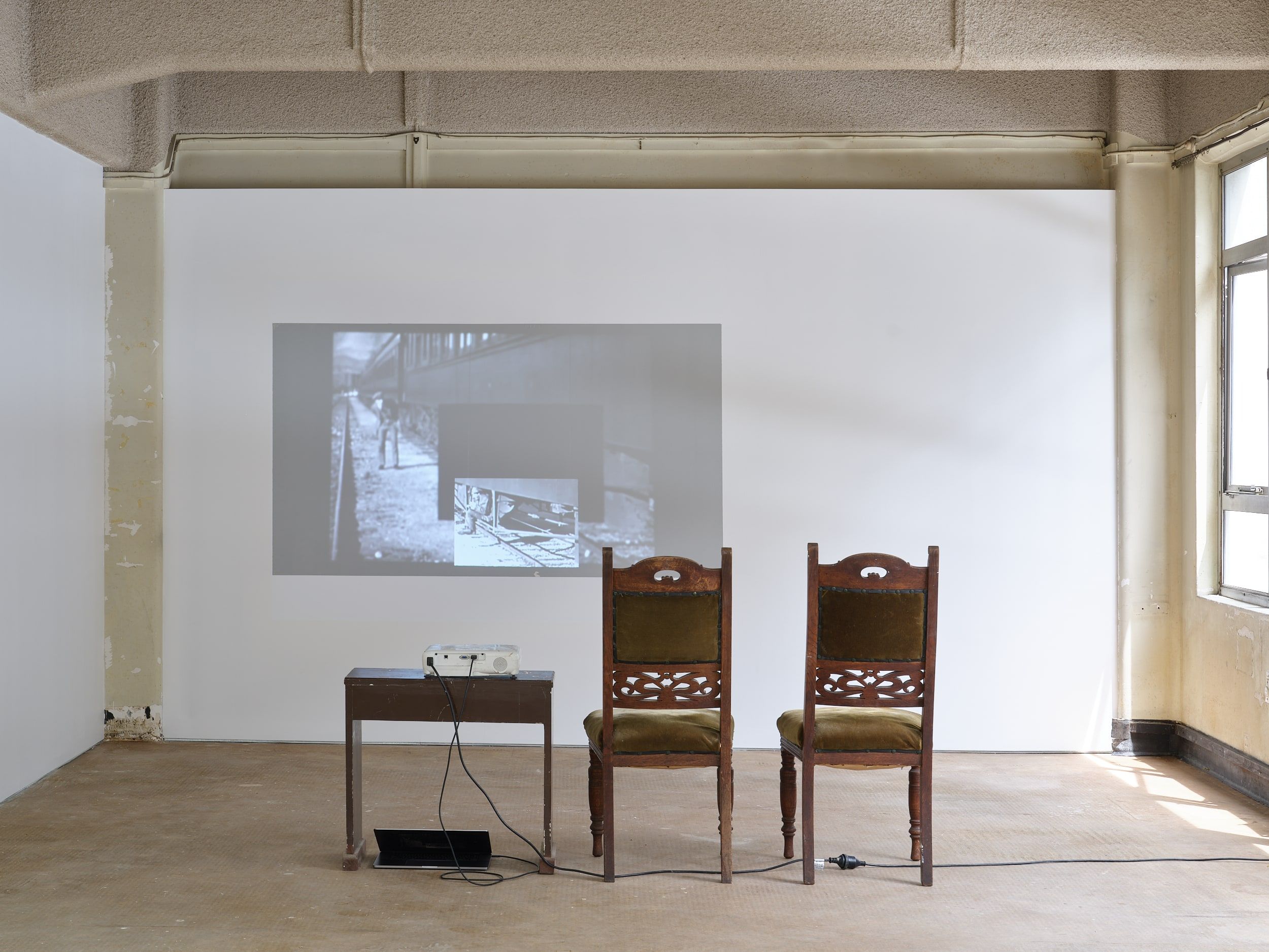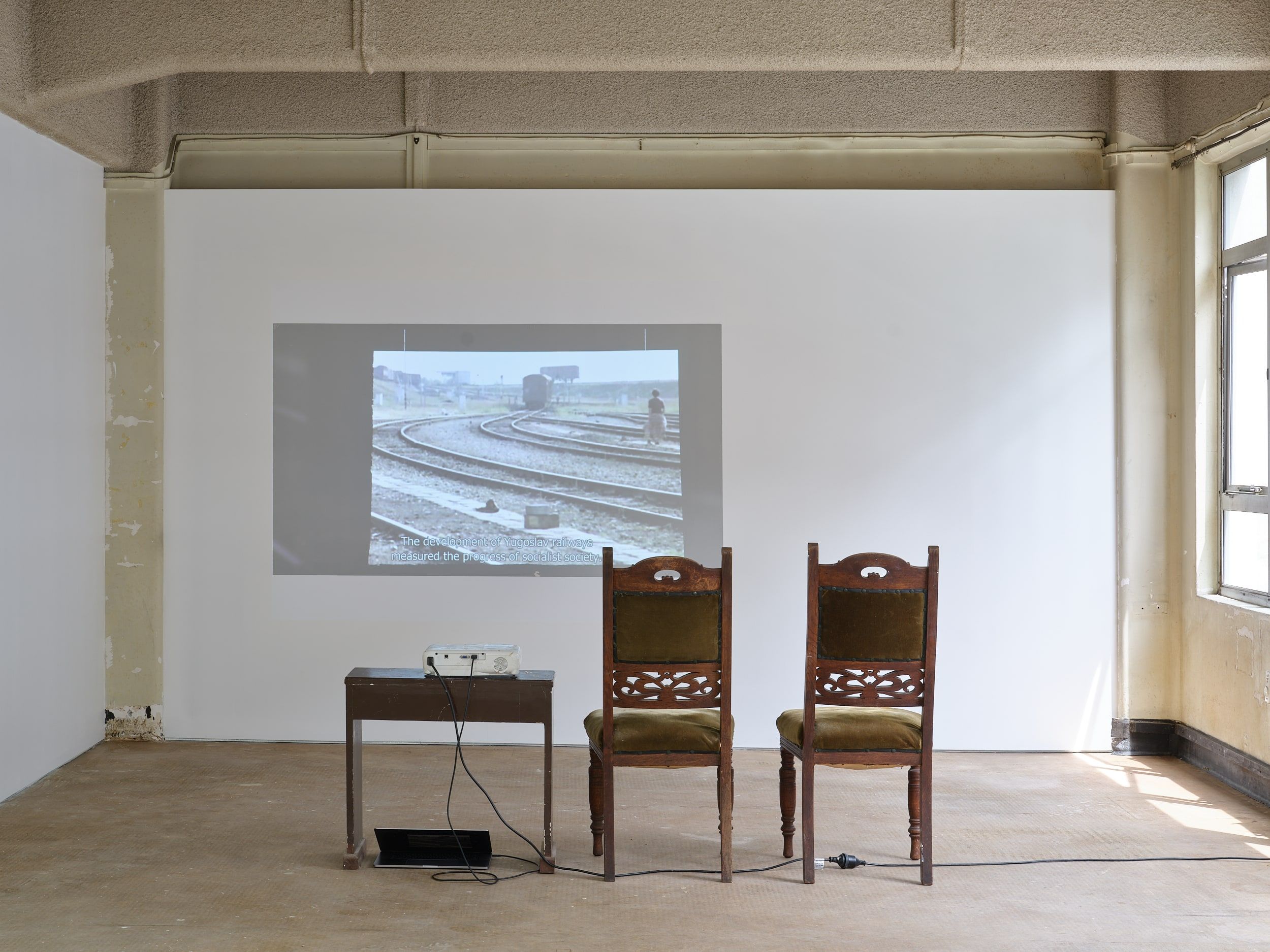 I’ve called this show ‘The Odour of Smoke’. This is a phrase used by Italo Calvino in his 1981 novel ‘If on a winter’s night a traveller’, describing the sensation he has that “the odor of smoke” clings to railway stations long after the trains have been electrified. He goes on to say that “a novel that talks about trains and stations cannot help conveying this”. I take this to mean that technologies change, we modernise, innovate, move on, and what we say, how we think, our modes of representation are entangled with them. But the past travels with us, and this is guaranteed by deeper continuities: our need to communicate, our desire to conquer distance, the conflicts we have to flee from, the economic pressures that drive us. This is what Nika Autor is saying in her ‘Newsreel 63 – The Train of Shadows’, which is presented here as an analogical mirror for the ideas I’m raising. I’m not nostalgic for my past but I recognise its otherness. If I can articulate the conditions for thinking and representing back then, it must therefore be possible to do the same for our present situation.